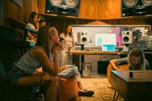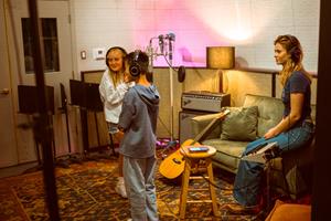 Suzy Shinn and Lou Lou Safran join Emmy and Jackson in a songwriting session to write the original song "Hope is a Light in the Dark," as part of a partnership between Musicians On Call and Hyundai Hope on Wheels in honor of Childhood Cancer Awareness Month.
